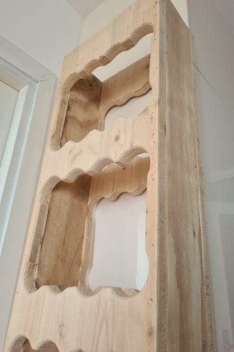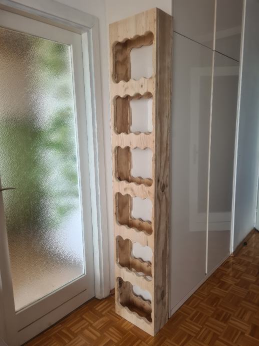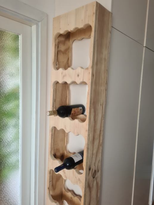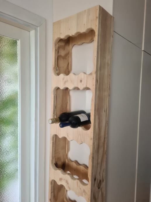 Prekrasan drveni stalak za vina/boce. Rucno raden, dimenzija 34.5x197x17.5cm.