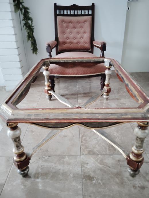 Drveni stol u odličnom stanju nema stakla dužina 115cm širina 82cm visina 50cm