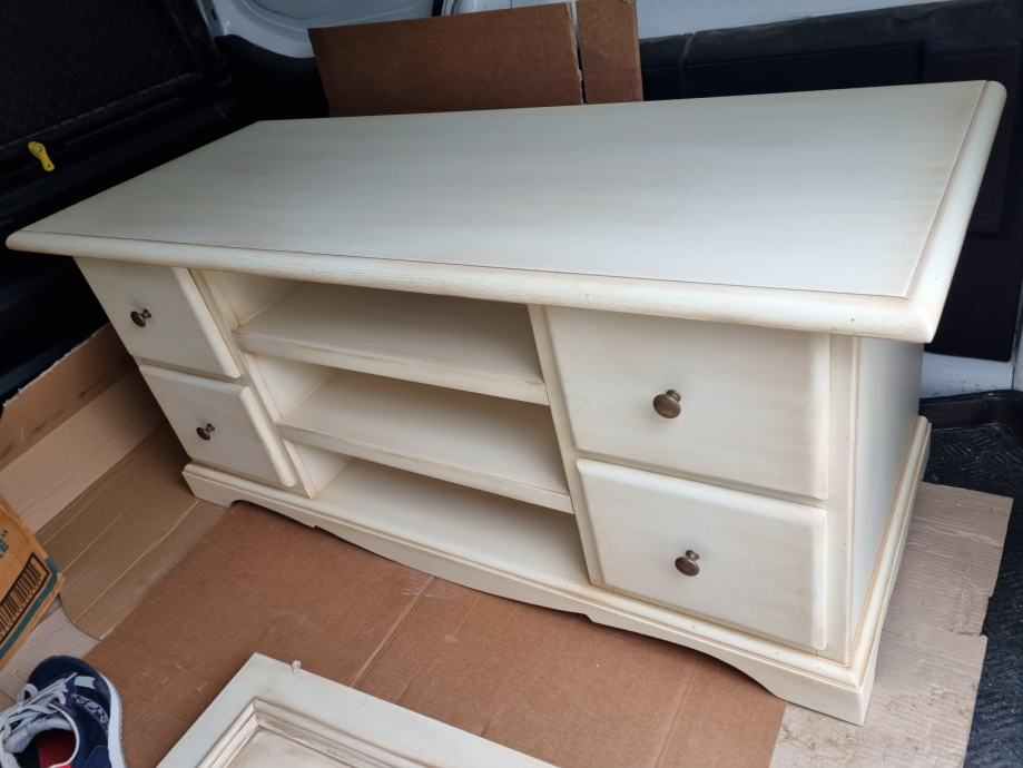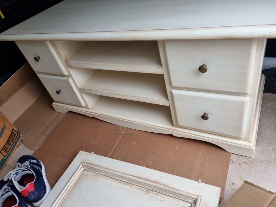 4 ladice ..drvo sve ..Novo.. lakirano bež antik ..patinirano