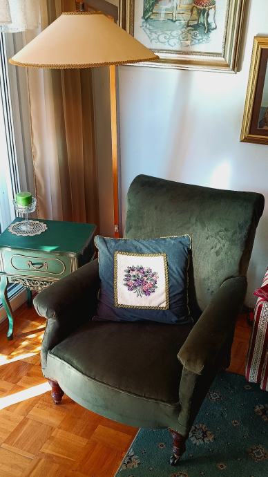 Howard Style fotelja iz druge polovice 19 st. Na mjedenim kotačima. U potpunosti restaurirana.