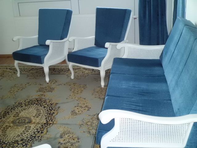 Naknadno je obavljena dodatna restauracija u shabby chic stilu te su sašivene nove presvlake za jastuke od jute (nije vidljivo na slikama).