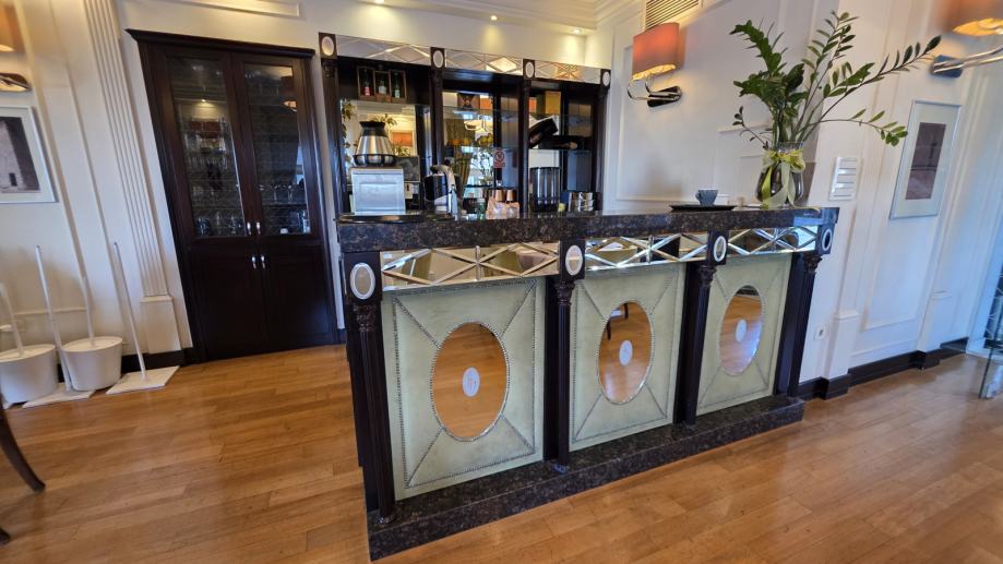 Prodaje se ugostiteljski šank iz restorana Kaštel, koji se nalazi u sklopu Hotela Bastion. Šank se prodaje zajedno s vitrinom i pripadajućim profesionalnim rashladnim uređajima. Inventar je korišten u hotelsko-restoranskom okruženju, redovito održavan i potpuno funkcionalan.
