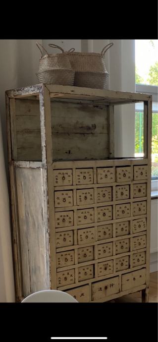 Kineski ljekarski ormar sa puno malih ladica u Kojima su pregrade pogodno za drzanje biljnih cajeva i zacina