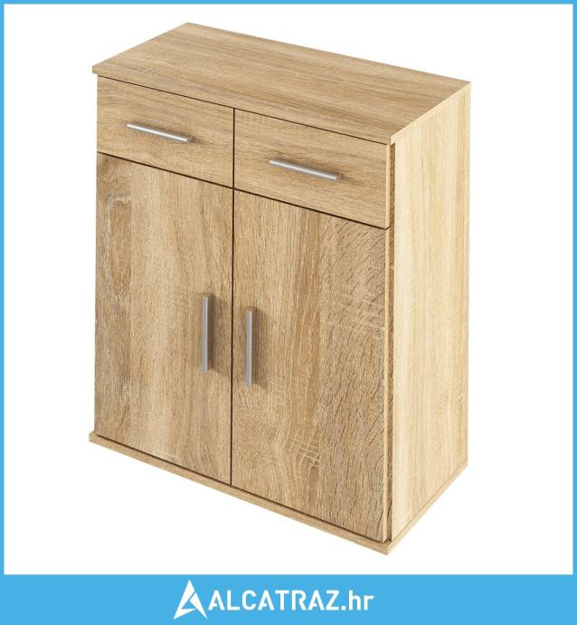 Materijal: laminirani DTD Boja: sonoma hrast Dimenzije (ŠxVxD): 70,6x35x79,5 cm Dvoja vrata s policom Dvije ladice s ručkom Isporučuje se rastavljeno ---------------------------------------------------------------------