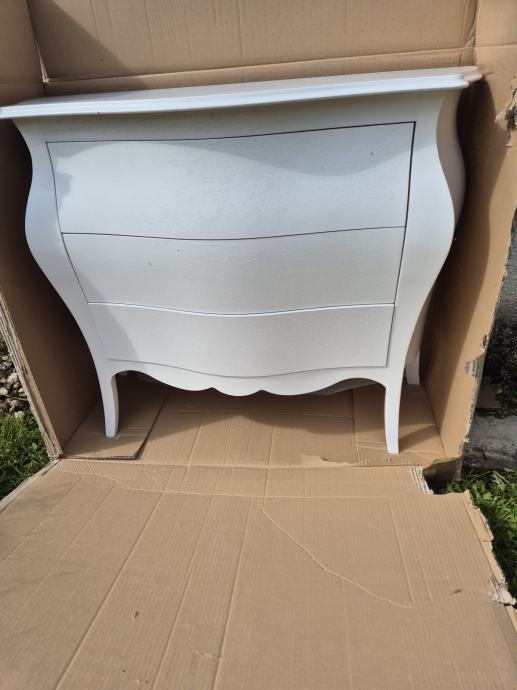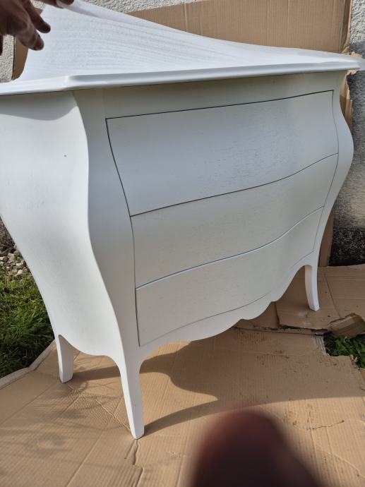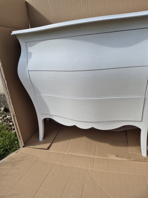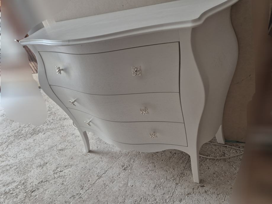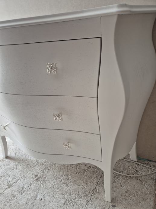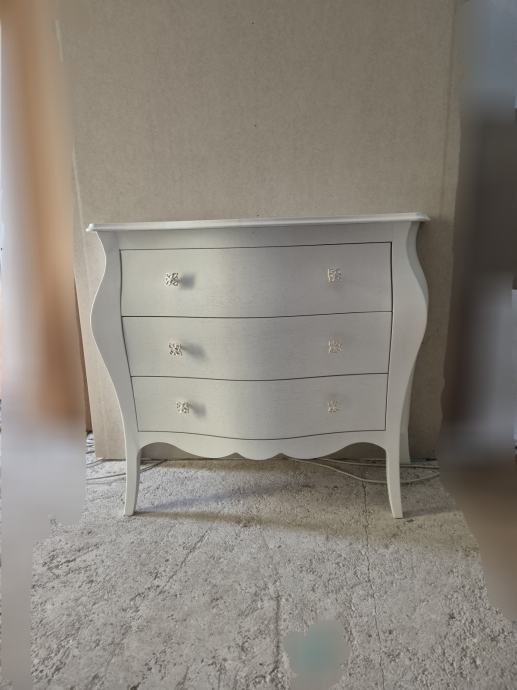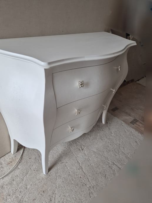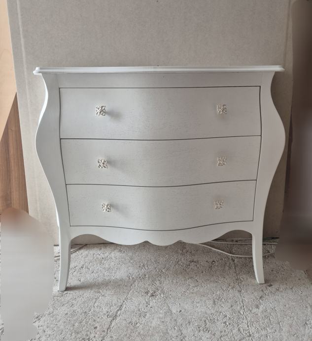 Komoda drvena bombirana na 3 ladice u mat bijeloj boji "made in Italy"
