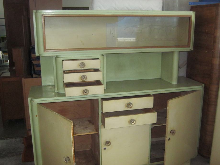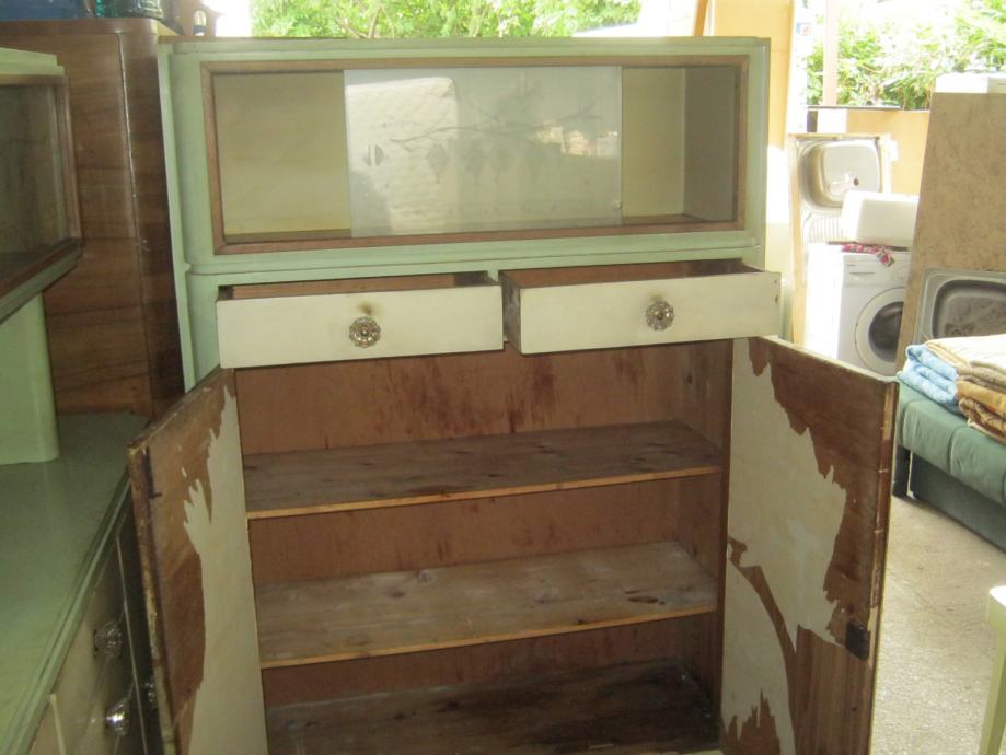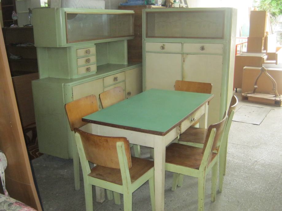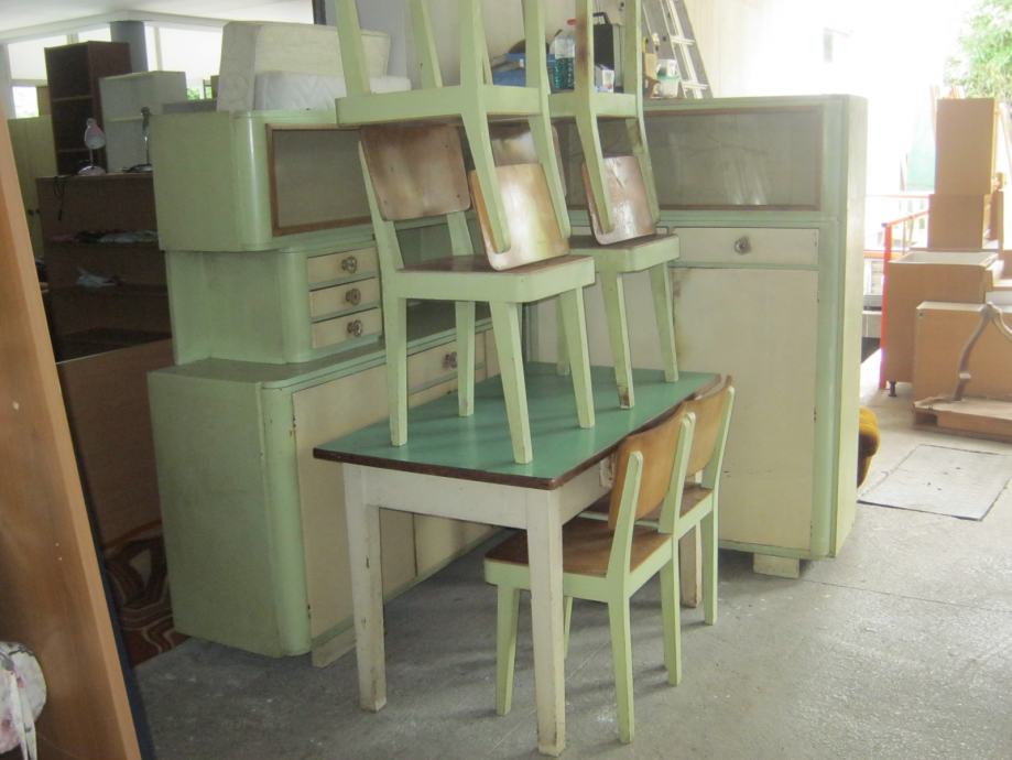 Kuhinja iz 50-ih godina, koja se sastoji od 2 kredence i stola sa 6 stolica. Pogodna je za sve vrste restauracijskih tehnika.