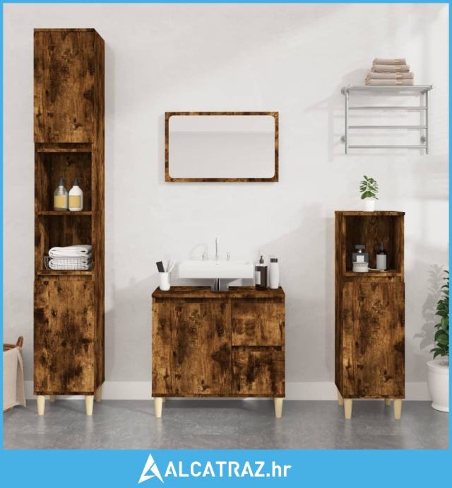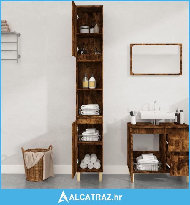 Kupaonski ormarić dimljeni hrast 30x30x190 cm konstruirano drvo - NOVO