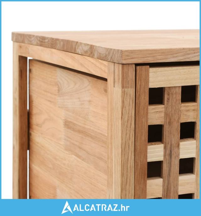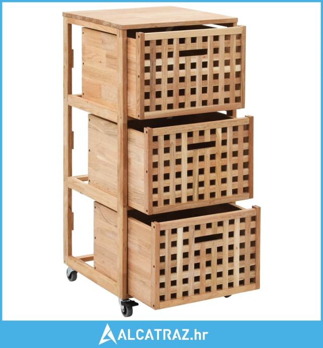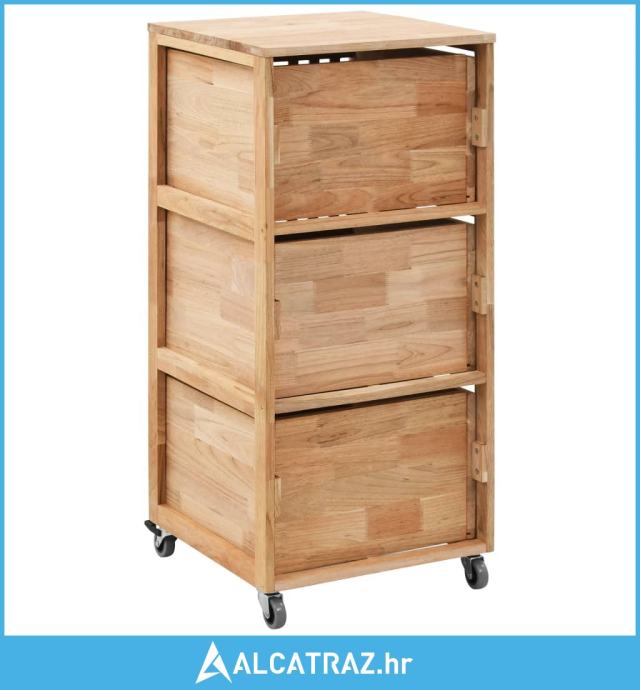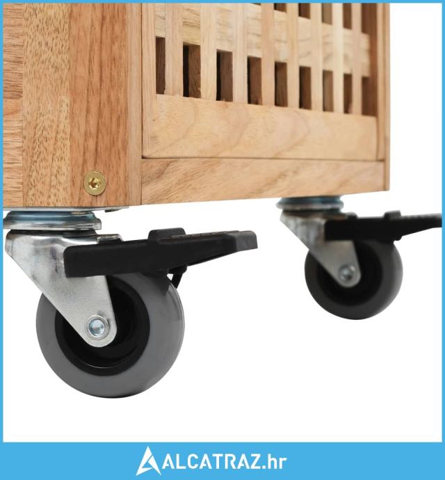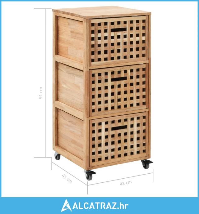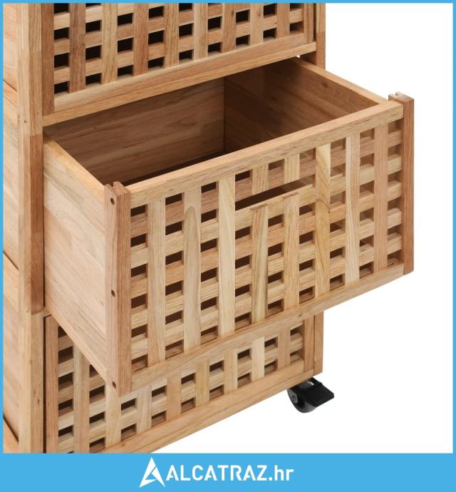 Spremnik za kupaonicu ima tri košare, koje nude dovoljno prostora za pohranu stvari poput ručnika, rublja, higijenskih proizvoda itd. Rešetkasti dizajn omogućuje dobru prozračenost stvari unutar košara. Napravljen od masivne orahovine i iverice, ormarić je vrlo čvrst i izdržljiv. Zahvaljujući četirima kotačićima, lako se pomiče.