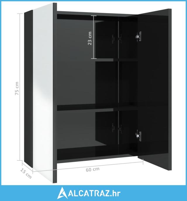 Kupaonski ormarić s ogledalom 60x15x75 cm MDF sjajni crni - NOVO
