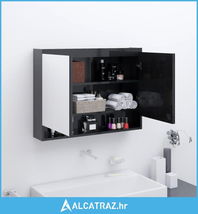 Kupaonski ormarić s ogledalom 80 x 15 x 60 cm MDF sjajni crni - NOVO