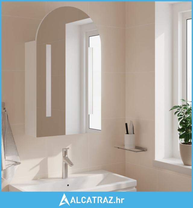 Kupaonski ormarić s ogledalom LED lučni bijeli 42 x 13 x 70 cm - NOVO