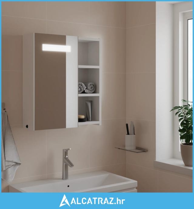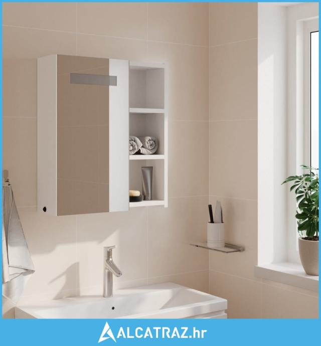Kupaonski ormarić s ogledalom i LED svjetlom bijeli 45x13x52 cm - NOVO