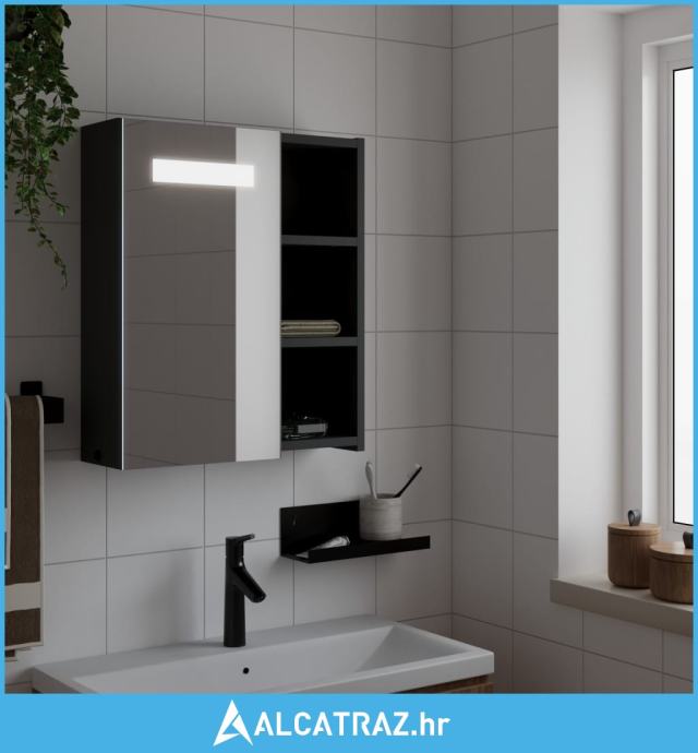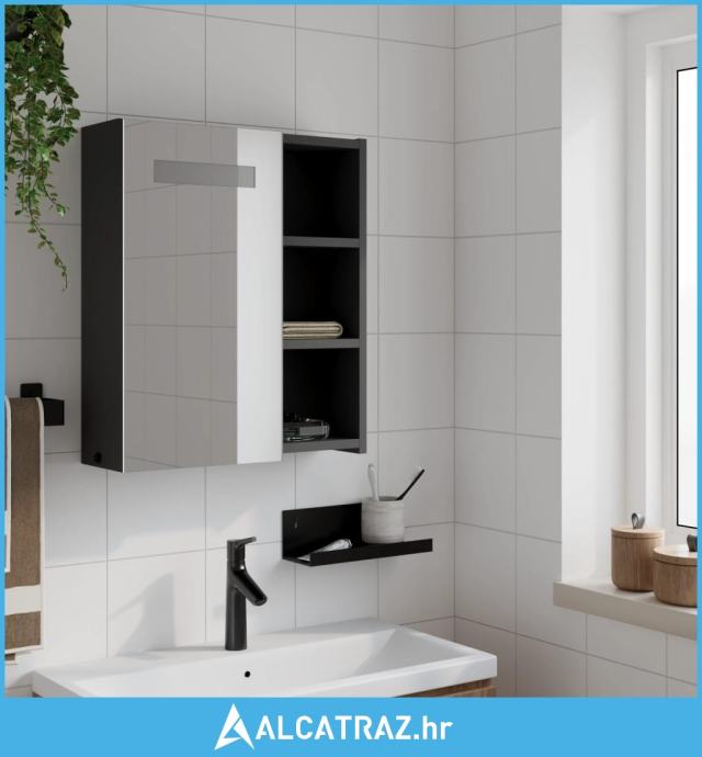 Kupaonski ormarić s ogledalom i LED svjetlom crni 45x13x52 cm - NOVO