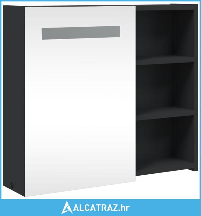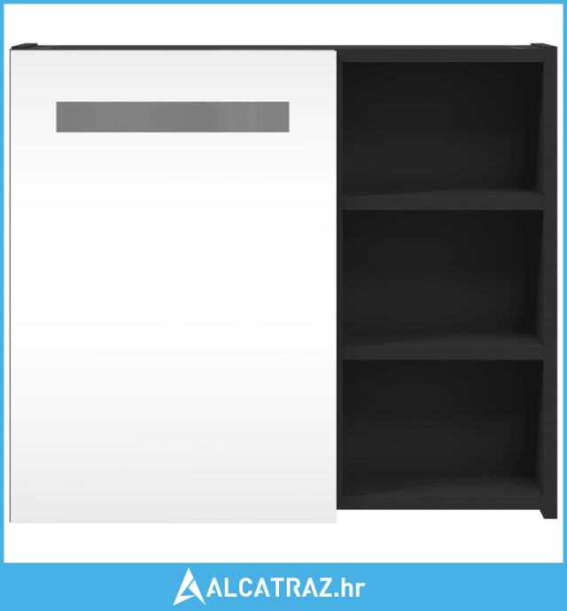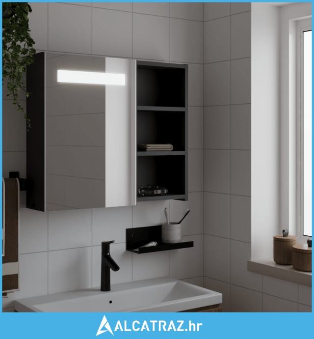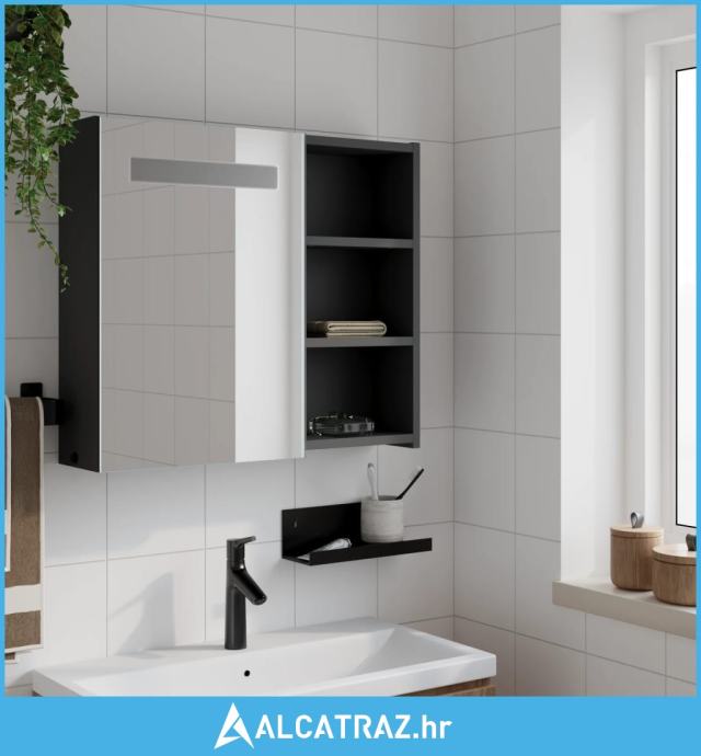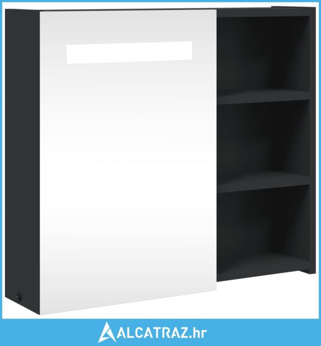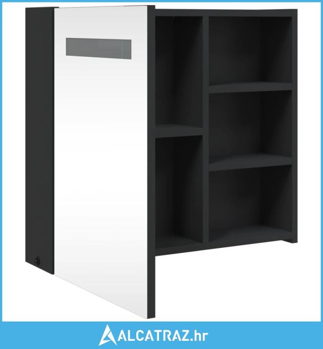 Kupaonski ormarić s ogledalom i LED svjetlom crni 60x13x52 cm - NOVO