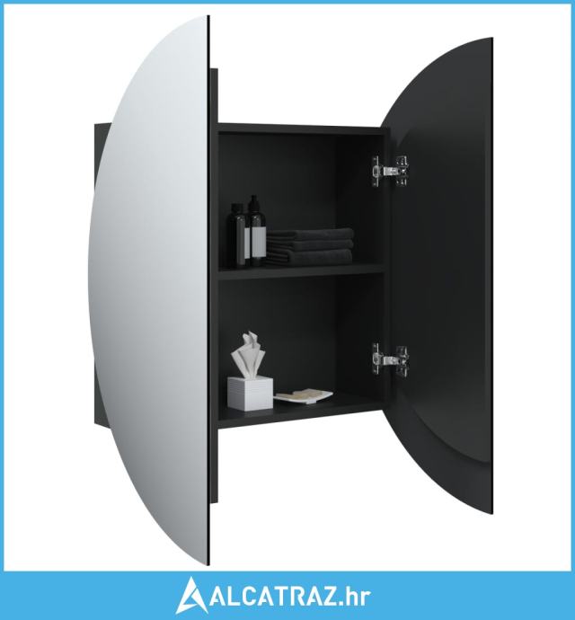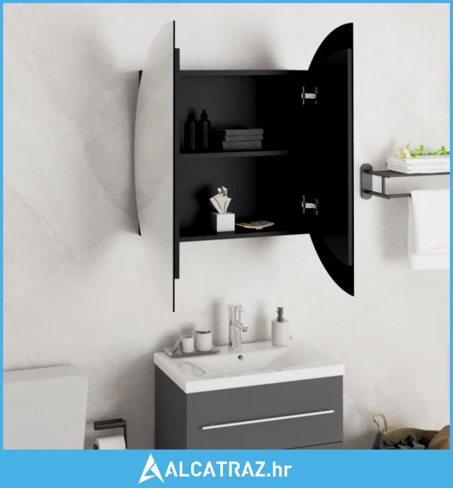 Kupaonski ormarić s okruglim ogledalom LED crni 54x54x17,5 cm - NOVO