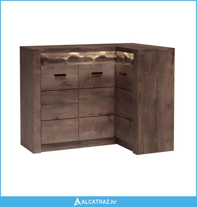 Kutna jedinica INFINITY 15 Okvir: debljina 48 mm Metalne ručke Materijal: laminirani DTD, ABS rubovi Izvedba u boji: tamni jasen Dimenzije (ŠxDxV): 131/90x42x103,5 cm Isporuka rastavljena. Isporuka bez LED rasvjete, LED rasvjeta se može naručiti. ---------------------------------------------------------------------