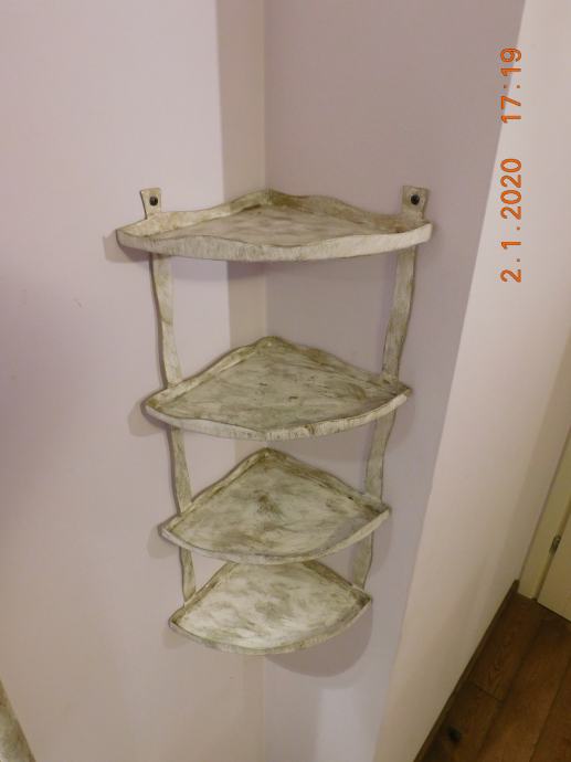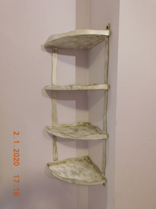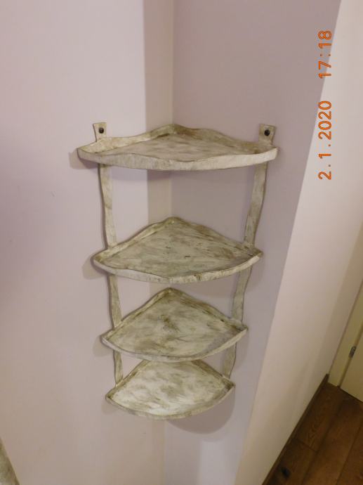 Prodajem kutnu metalnu stalažu, ručni rad, za odlaganje raznih sitnica.