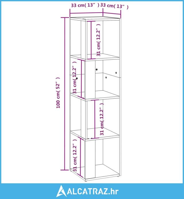 Ovaj kutni ormarić bit će elegantan dodatak uređenju vašeg dnevnog boravka! Dostupna su 4 odjeljka za uredno spremanje vaših knjiga, CD-ova, časopisa, ukrasa ili biljaka u posudama.