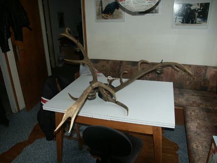 Luster od jelenjih rogova sa jednom velikom i tri male kugle vrlo atraktivan prodajem