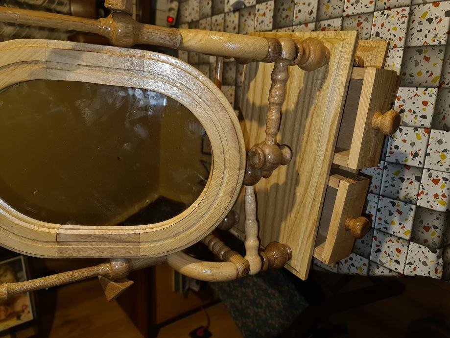 Mala psihica masiv puno drvo.nekoristeno.ima stolic .dvije ladice .drzaci za svjecice ili ruzove.ogledalo.jedinstveni primjerak.rucni rad.dimenzije cca 40x40x25 cm.osobno preuzimanje .dostava dpd.