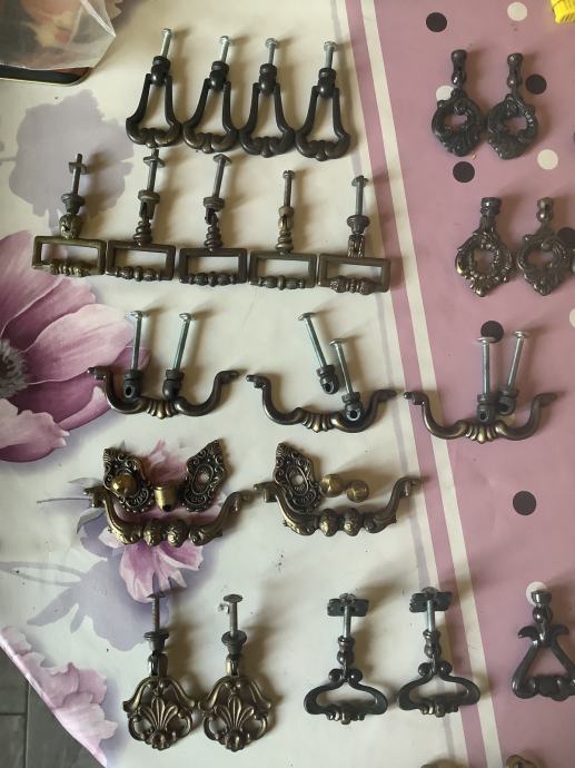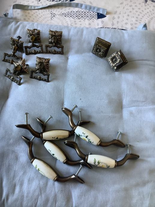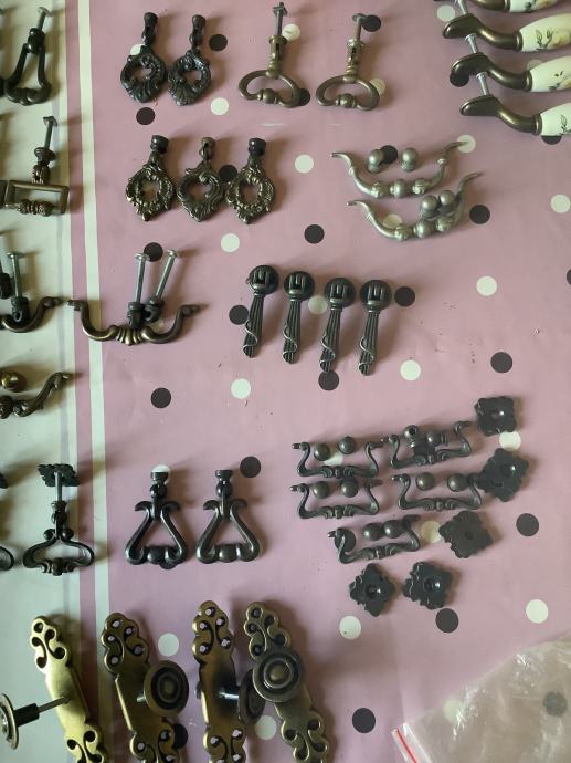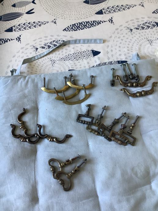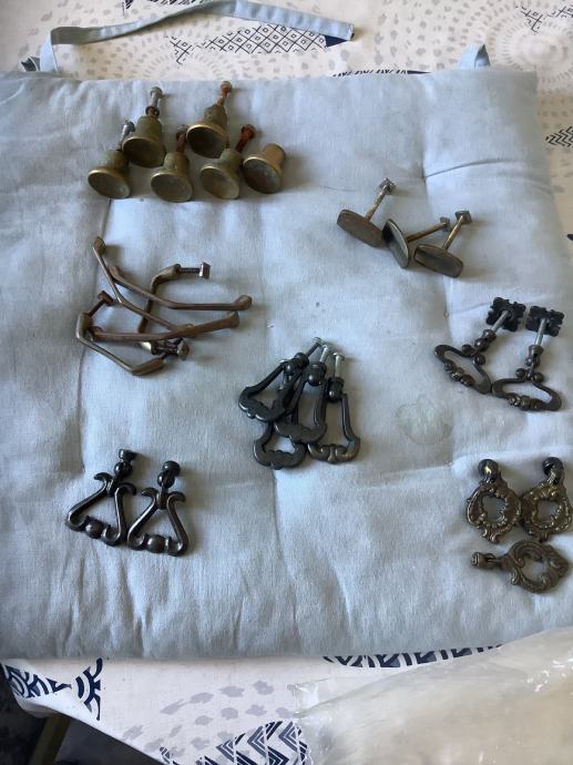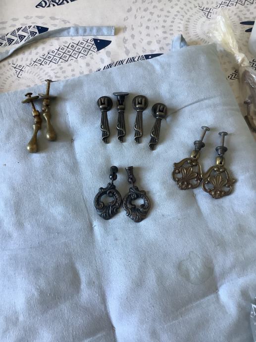 Razne mesingane ručkice i stari ključevi za namještaj.