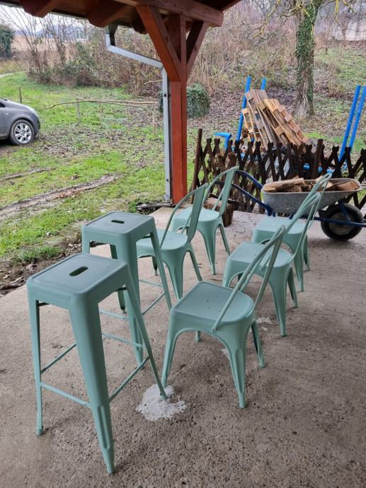 Prodajem set metalnih stolaca u tolix stilu , 2 barska i 5 normalnih u boji kadulje , mat. Uz set dolazi i još jedam barski stolac bez jedne prečke za noge.