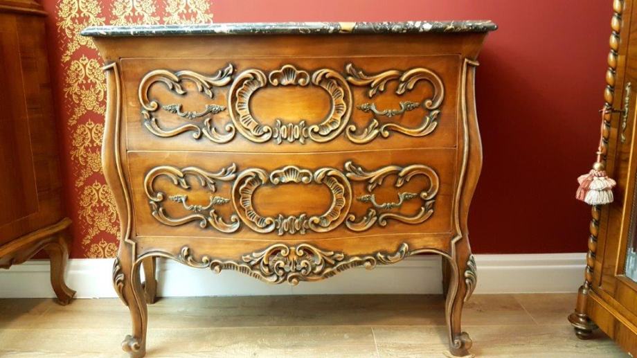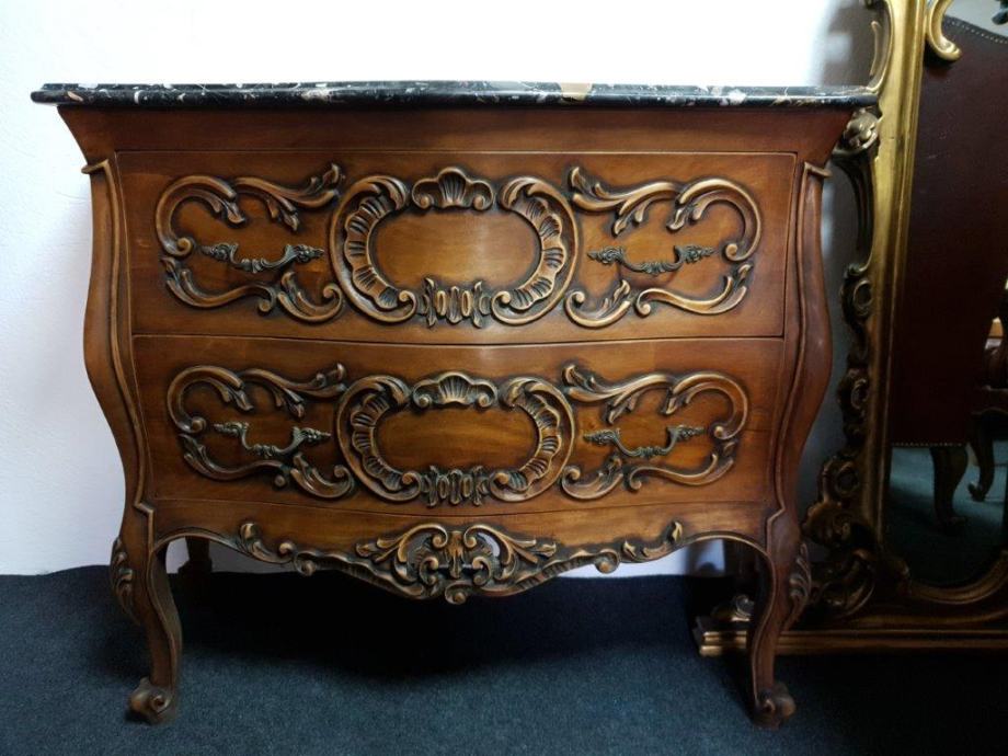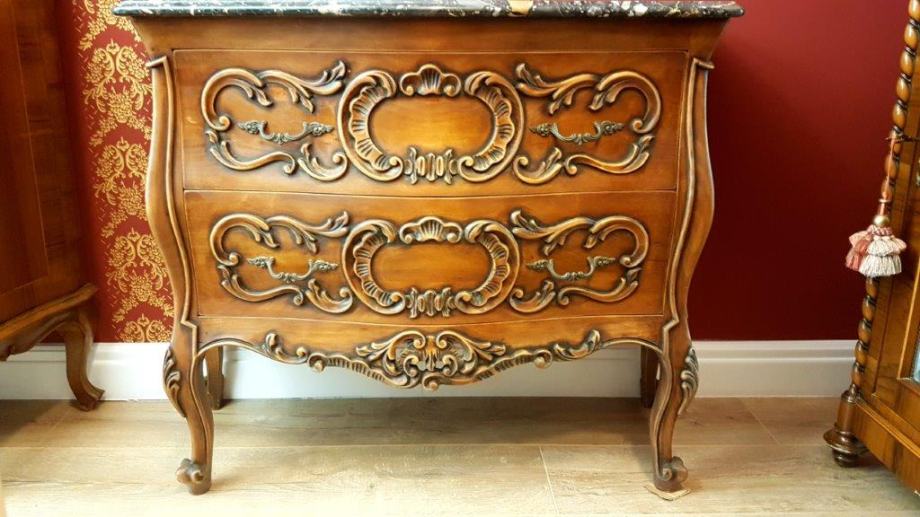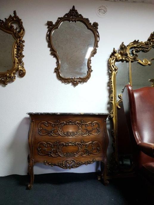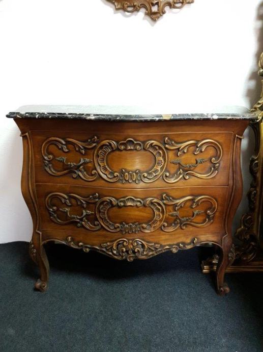 Neobarokna ručno rađena komodica s mramornom pločom i ogledalom