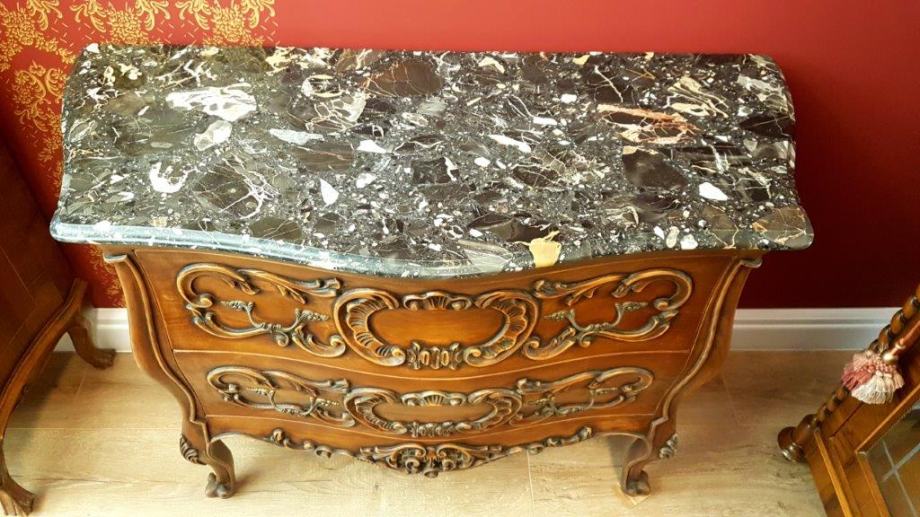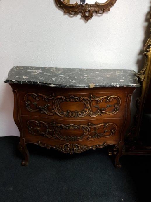 Neobarokna ručno rađena komodica s mramornom pločom i pripadajućim ogledalom, stanje odlično!