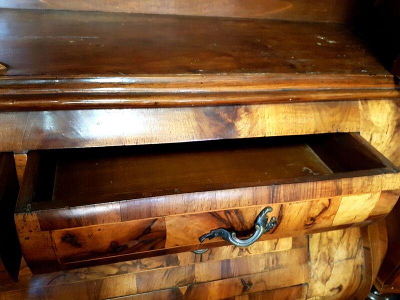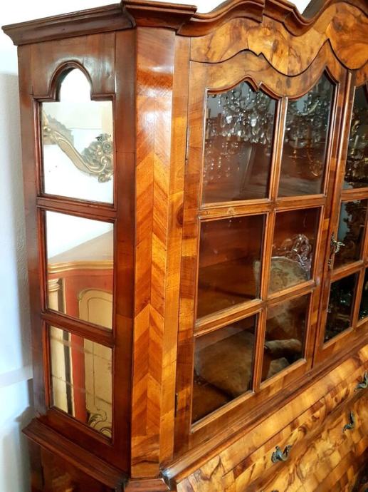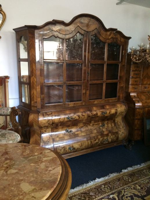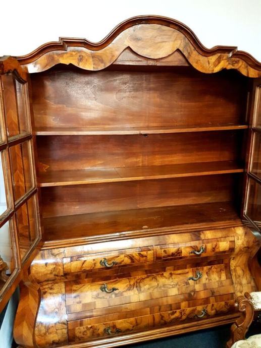 Velika neobarokna masivna vitrina, debeli furnir, dvodjelna.