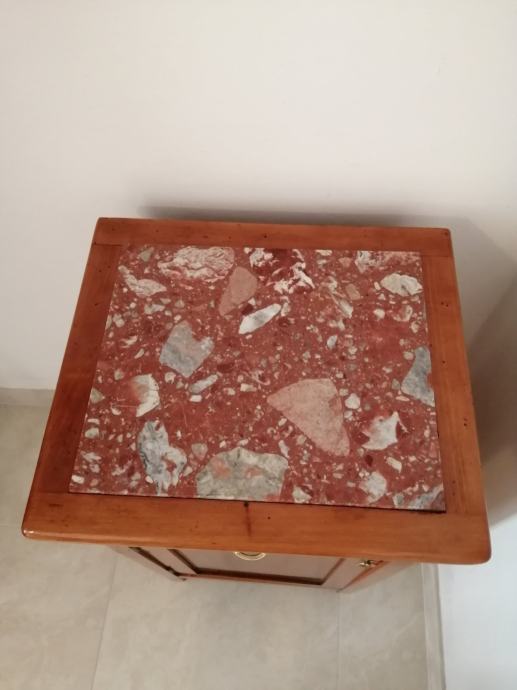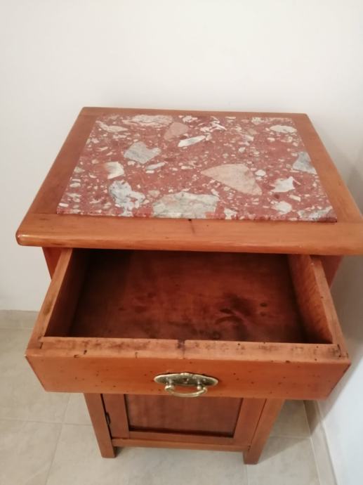 Noćni ormarić, puno drvo (hrast). Vrh ormarića sa mramornom ploćom. Star preko sto godina, očuvan i freško restauriran.