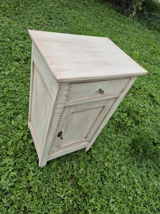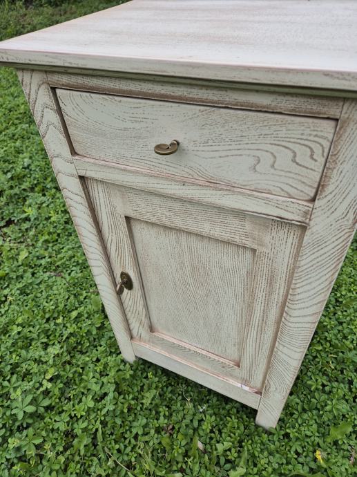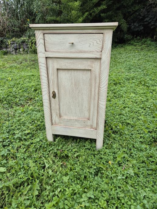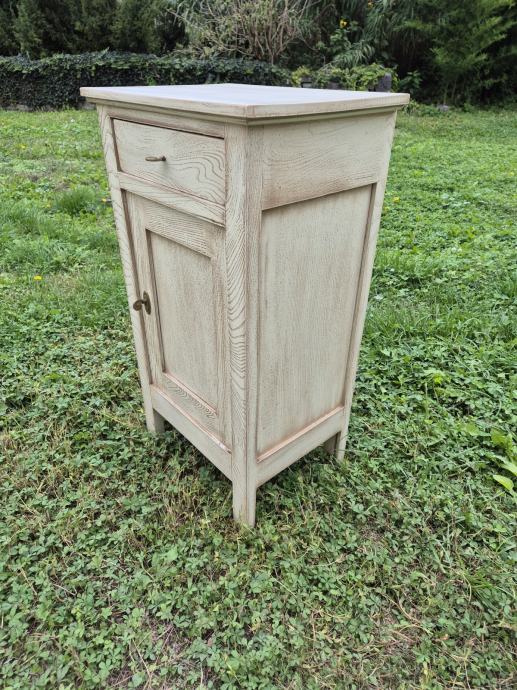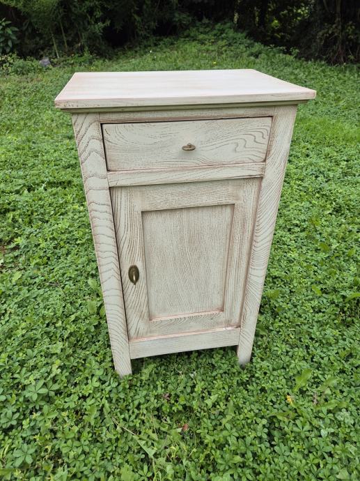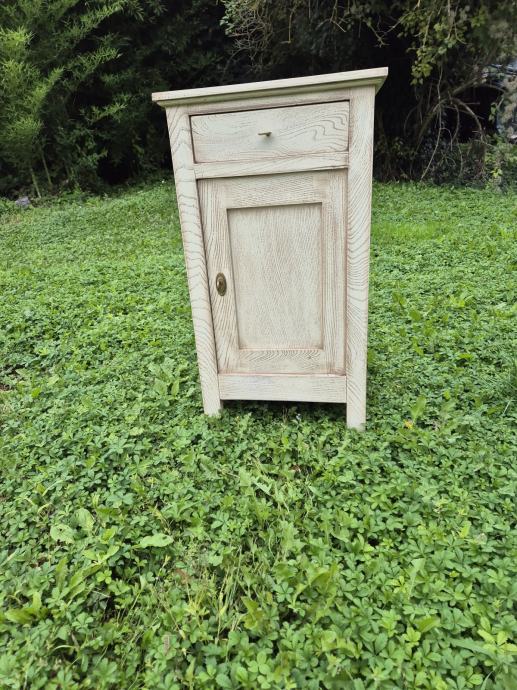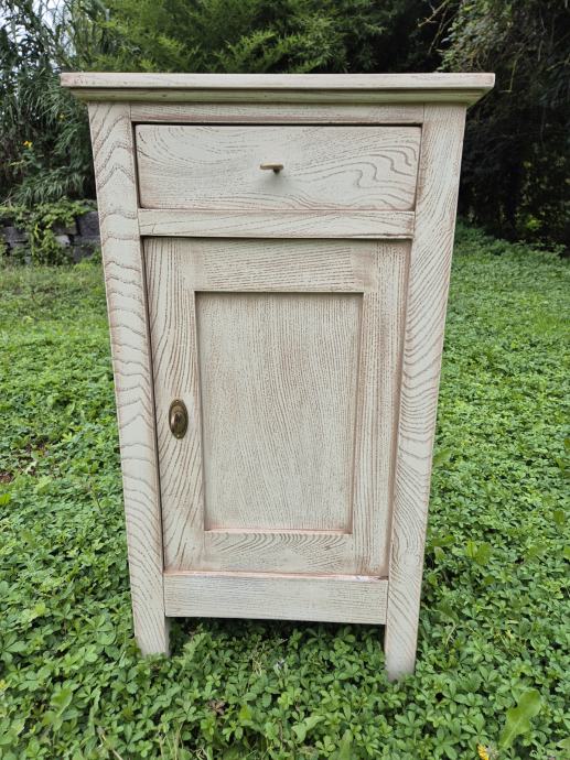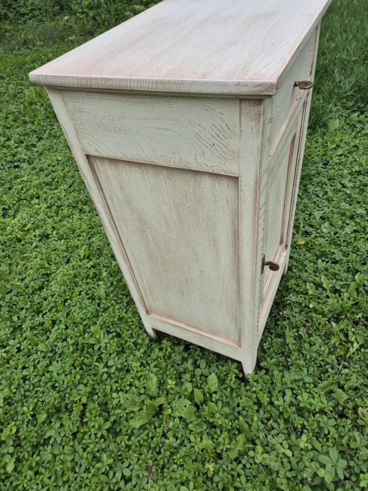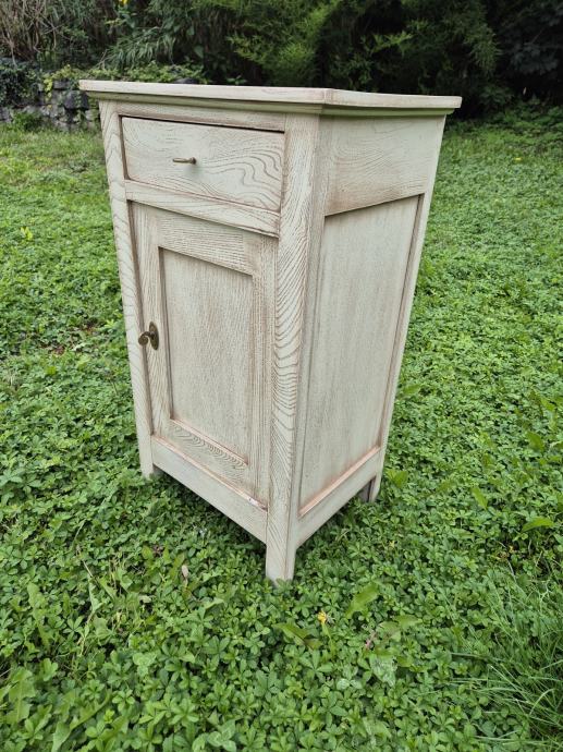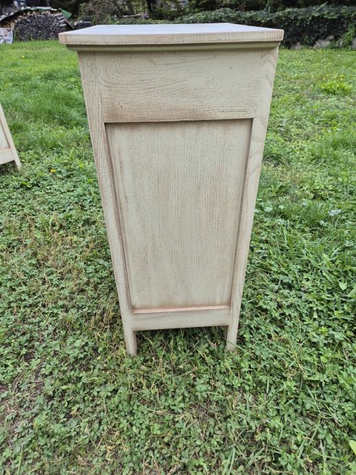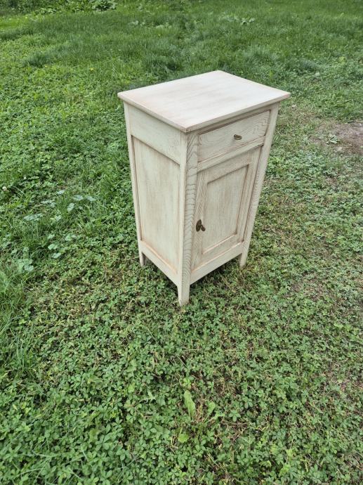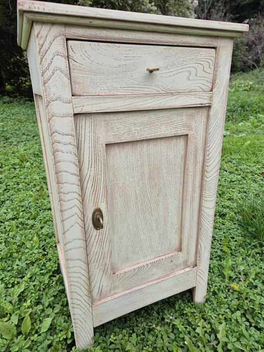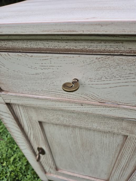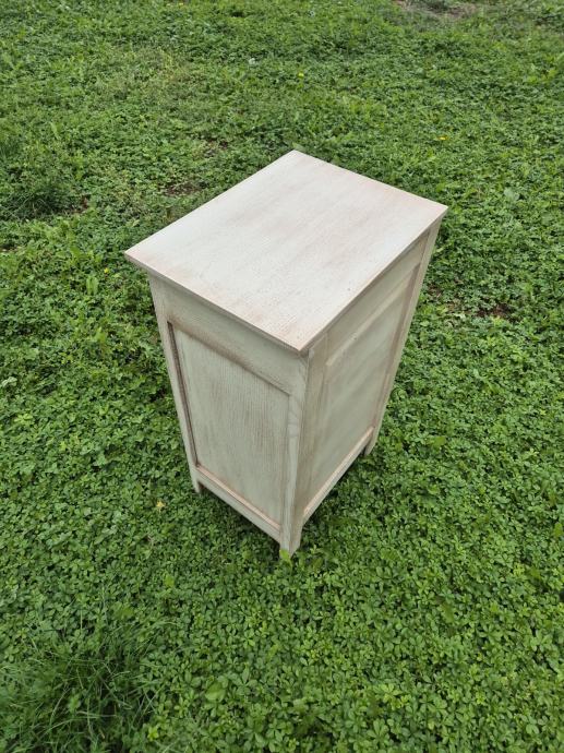 Stari....očišćeni, tretirani protiv moljaca,i na novo lakirani ...lakirani izvana ,iznutra ,leđa...i na starinski način opet lakirani da ostane taj starinski štih...novi okov.(ručkice)..Predivne su u živo