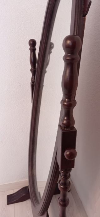 Ogledalo na postolju od masivnog drva.