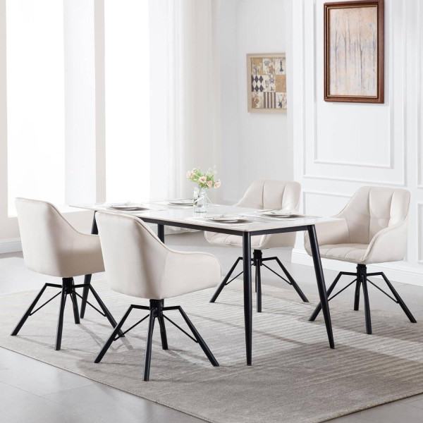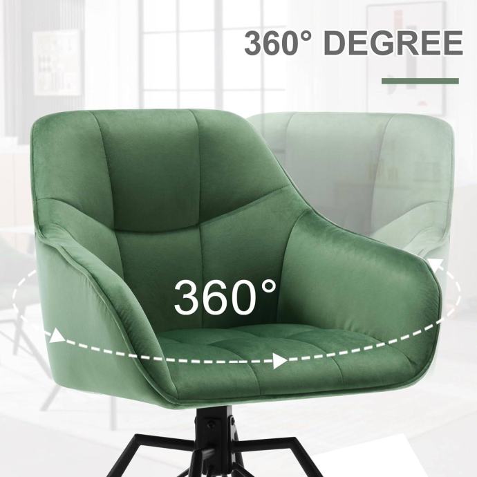 Zahvaljujući mehanizmu zakretanja za 360°, stolac za okretanje blagovaonice omogućuje vam da se okrećete bez napora i slobodno u bilo kojem smjeru. Osim toga, dizajn bez valjaka povećava sigurnost tijekom uporabe. Široko sjedalo presvučeno je mekim baršunom ugodnim za kožu i podstavljeno elastičnom pjenom kako biste se osjećali udobno i opustili čak i kada dugo sjedite. S naslonom za ruke i leđa, stol za blagovanje osigurava udobno iskustvo blagovanja dok podupire lumbalnu kralježnicu. Također se može koristiti kao kuhinjska stolica, stolica za dnevni boravak ili stolica za toaletni stolić. Zahvaljujući čvrstoj okretnoj ploči i crno obojenim metalnim nogama, stolica je robusna i može izdržati do 120 kg. 4 jastučića za noge sprječavaju klizanje i ogrebotine na podu, od kojih su 2 podesive za veću stabilnost. Za sve informacije nazovite na broj telefona 092/399-75-19