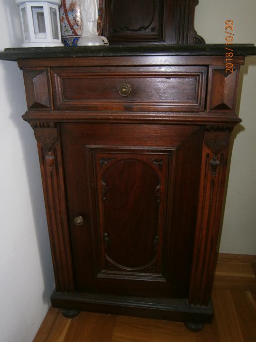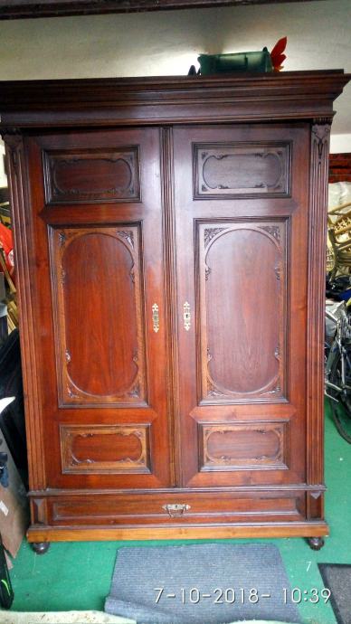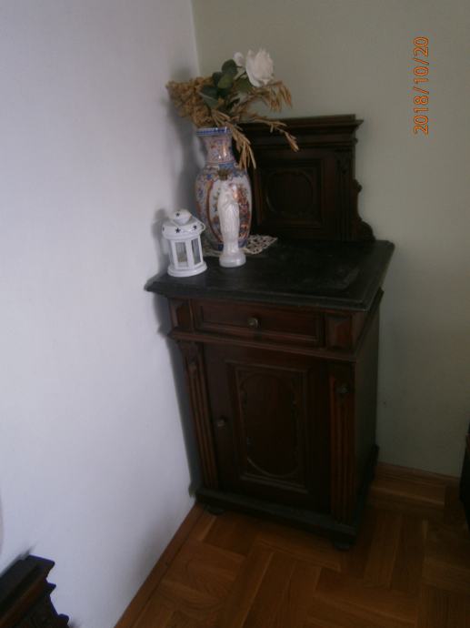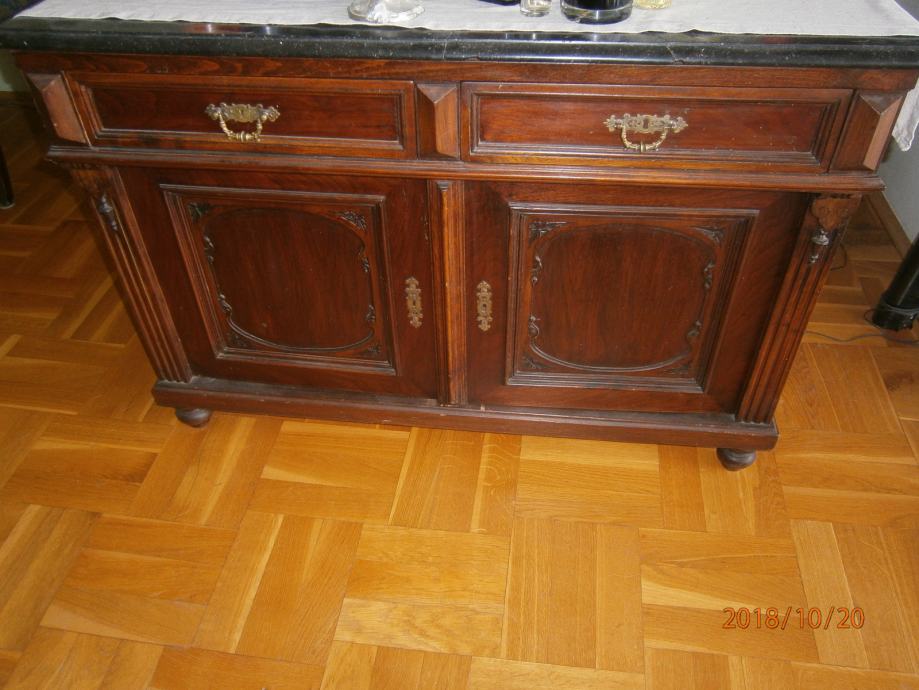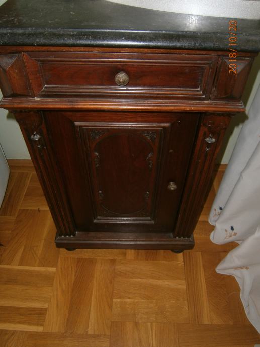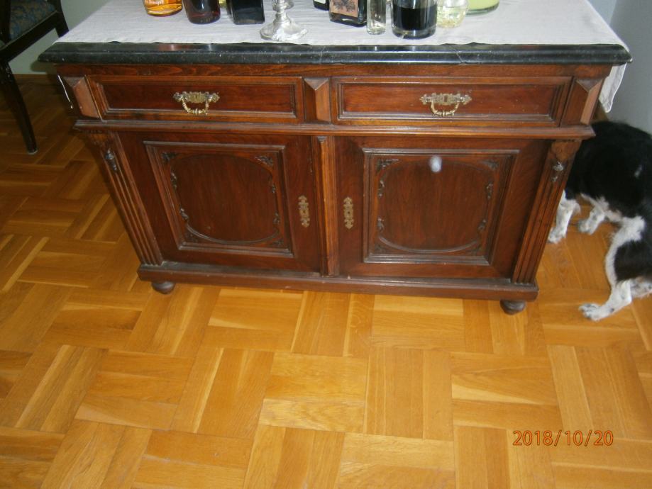 Stari namještaj od punog drveta, 2 ormara, 2 kreveta, 2 noćna ormarića sa tamnom mramornom pločom, komoda sa sa mramornom pločom (na žalost pukla na tri dijela), staro preko 100g., prodaje se u kompletu....Ako ima interesa za pojedinačnu kupnju, cijena po komadu je u tom slučaju dogovorna...
