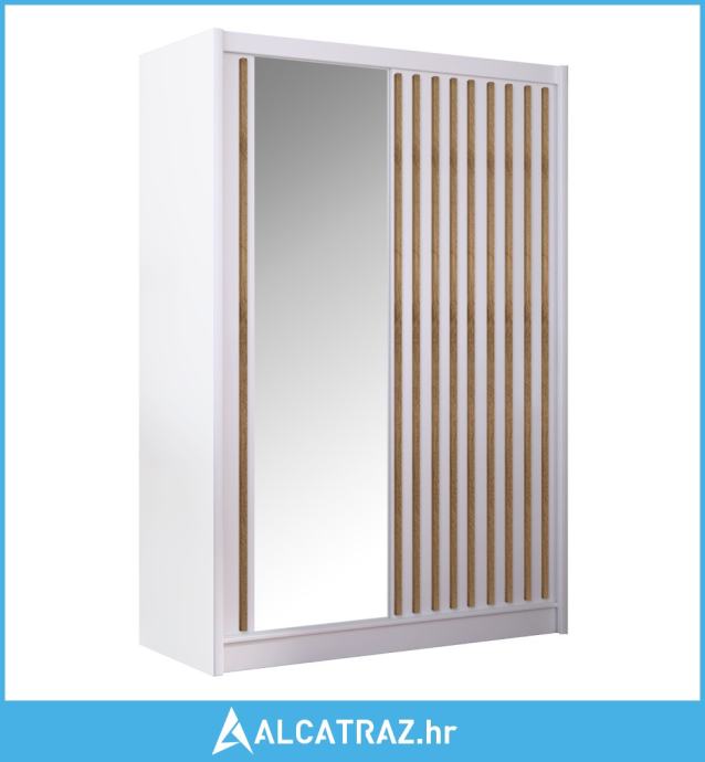 Materijal: laminirani DTD/ABS rubovi/MDF folijirani rubovi/staklo Boja: bijela/craft hrast Dimenzije (ŠxDxV): 150x61x215 cm Debljina DTD-a: 1,6 cm Debljina letvice: 2,5 cm Debljina ABS-a: 0,045 cm Nosivost police: 5 kg Nosivost vješalice: 5 kg S kliznim vratima S ogledalom Dio police Dio vješalice Dvoja vrata Ne preporučuje se utovar gornje ploče Isporučuje se rastavljeno ---------------------------------------------------------------------
