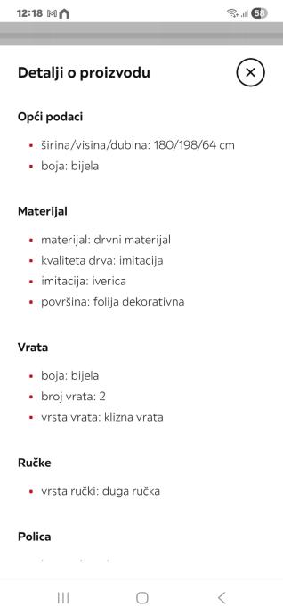 Prodaje se ormar. Korišten 3 godine. Ima 2 šipke. Ostali podaci na slikama.