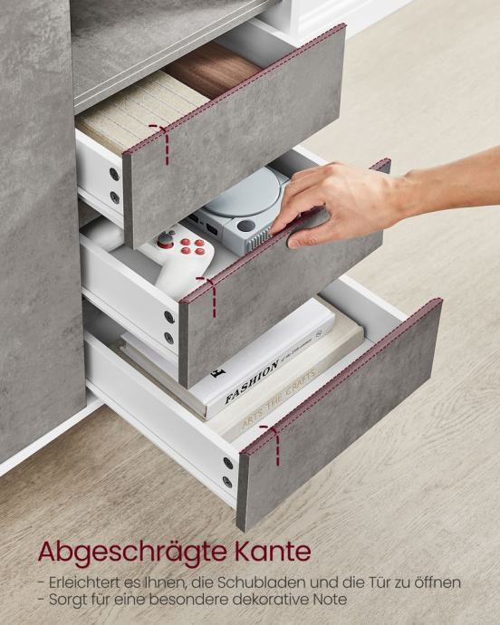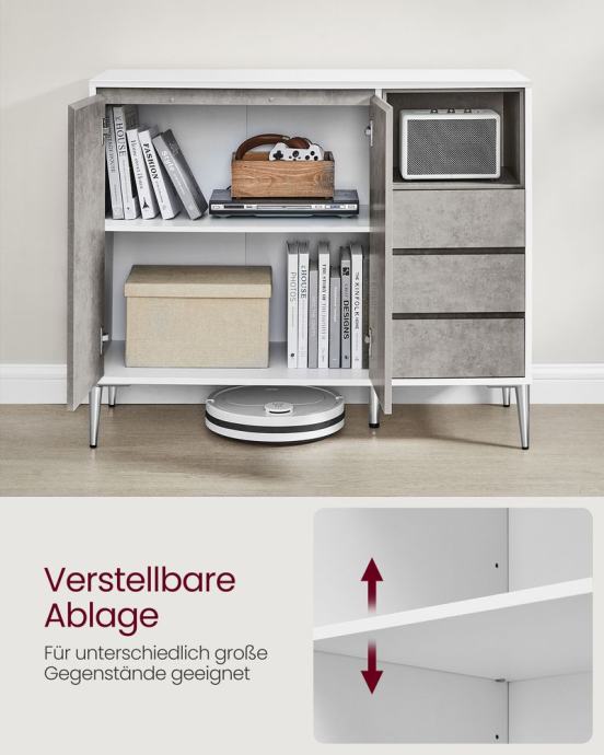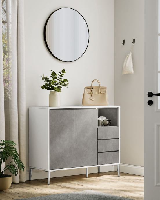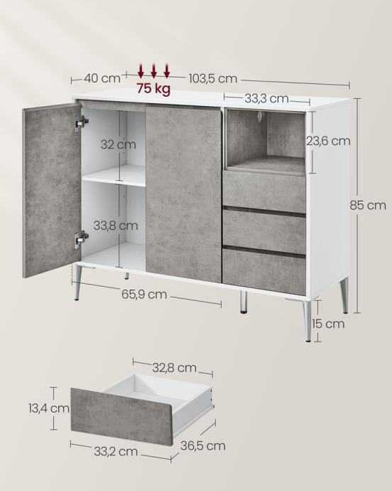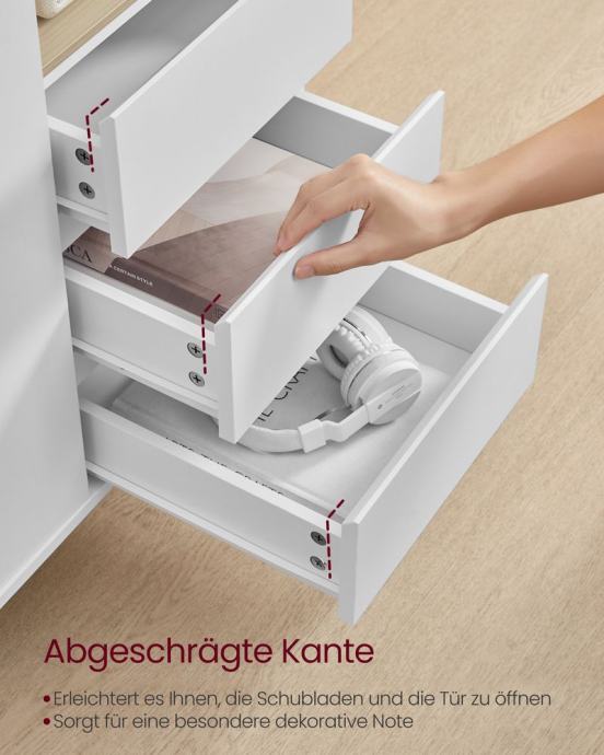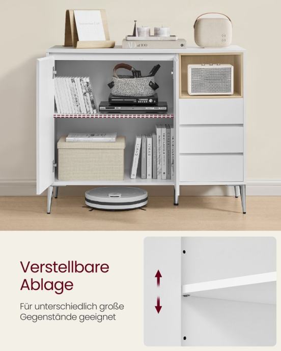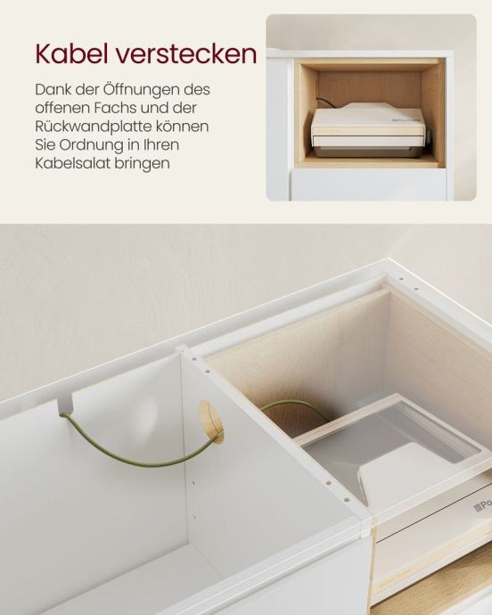 Polica iza vrata podesiva na 5 razina za pohranu predmeta različitih veličina; velika površina i otvoreni pretinac za pohranu stvari na dohvat ruke; 3 ladice za razvrstavanje stvari. Vrata i ladice lako se otvaraju zahvaljujući zakošenom rubu; rupe otvorenog odjeljka i stražnje ploče sprječavaju zapetljavanje kabela; S podesivim šarkama, vrata su uvijek poravnata. Ormar za dnevnu sobu opremljen je dijelovima protiv prevrtanja i može se pričvrstiti na zid kako bi se stvorilo sigurno okruženje za vašu obitelj. Zahvaljujući visokim nogama ove komode, robotski usisavači mogu se lako voziti ispod i čistiti vaš pod, štedeći vaše vrijeme i trud. Čiste linije, bijeli ton - ovaj minimalistički i moderan kuhinjski element pristaje različitim stilovima interijera i dobro izgleda u dnevnoj sobi, predsoblju, blagovaonici i radnoj sobi. Za sve informacije nazovite na broj telefona 092/399-75-19