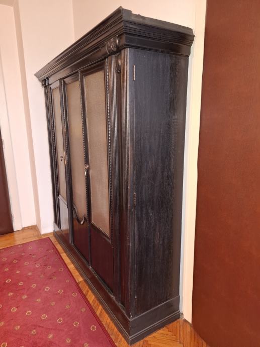 Ormar, starinski, crne boje, star oko 100 godina. Stoji u uredu i koristio se kao ormar za dokumentaciju.