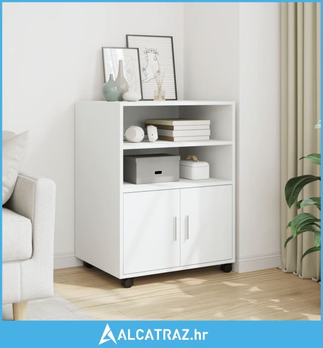 Ormarić s kotačima bijeli 60 x 48 x 81 cm konstruirano drvo - NOVO