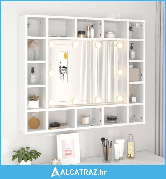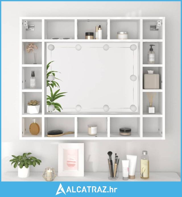 Ormarić s ogledalom i LED svjetlima bijeli 91 x 15 x 76,5 cm - NOVO