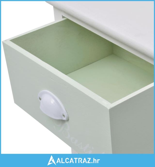 Ovaj ormarić s ladicama ima 3 glatko klizeće ladice, koje pružaju dovoljno prostora za pohranu vaših osobnih stvari i pomoći će u održavanju uredne sobe. Ladice s vintage printom u tradicionalnom stilu naglašavaju ruralni šarm ormarića. Ladice se mogu izmjenjivati. Možete također izložiti stvari poput fotografija, knjiga i lončanica na vrhu ormarića za hodnik. Izrađen od visokokvalitetnih materijala, bočni ormarić izdržljiv je i jednostavan za čišćenje.