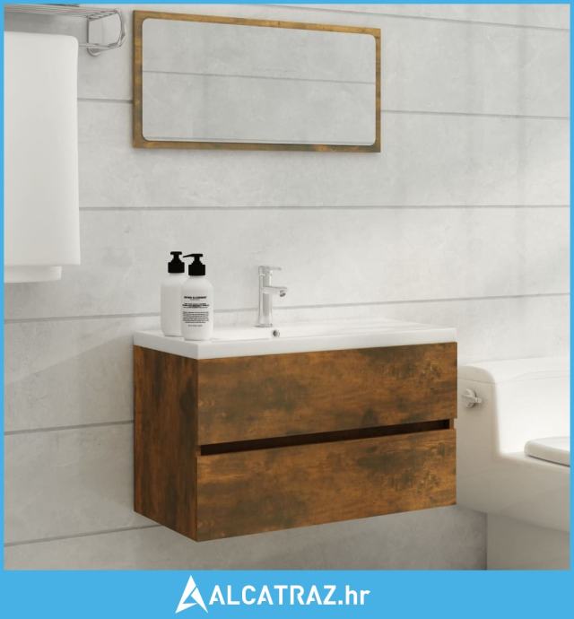 Ormarić s ugrađenim umivaonikom boja dimljenog hrasta drveni - NOVO