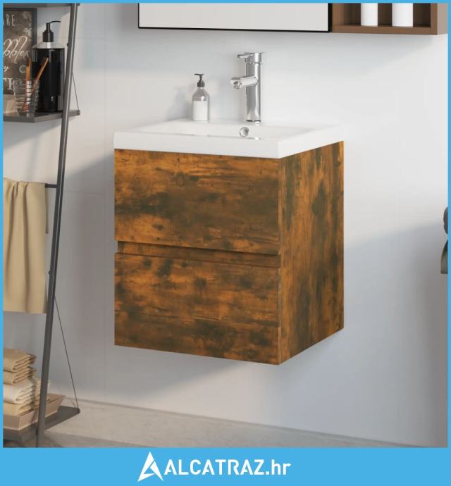 Ormarić s ugrađenim umivaonikom boja dimljenog hrasta drveni - NOVO