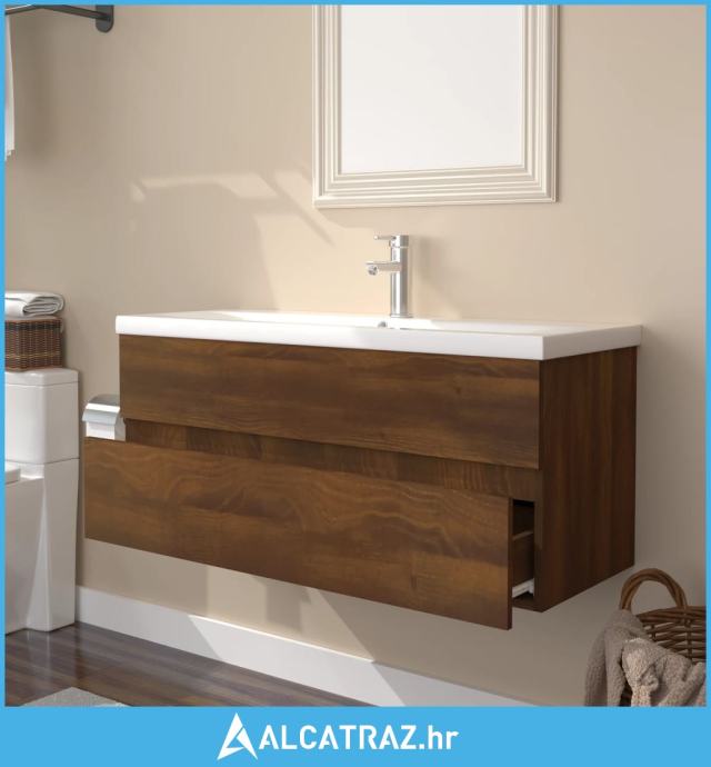 Ormarić s ugrađenim umivaonikom boja smeđeg hrasta drveni - NOVO