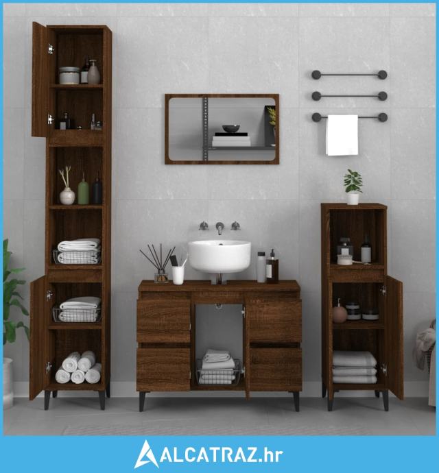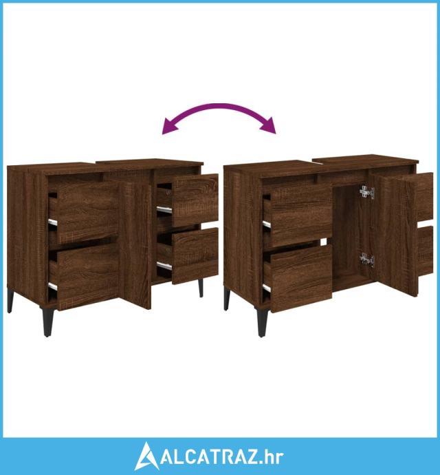 Ormarić za umivaonik boja Smeđi hrasta 80x33x60 cm drveni - NOVO