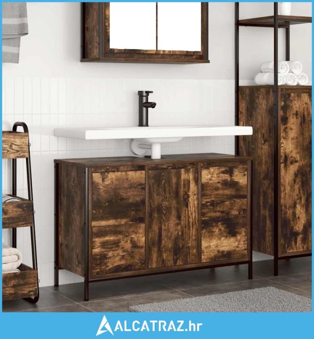 Ormarić za umivaonik s ladicama dimljeni hrast 90x34,5x60 cm - NOVO