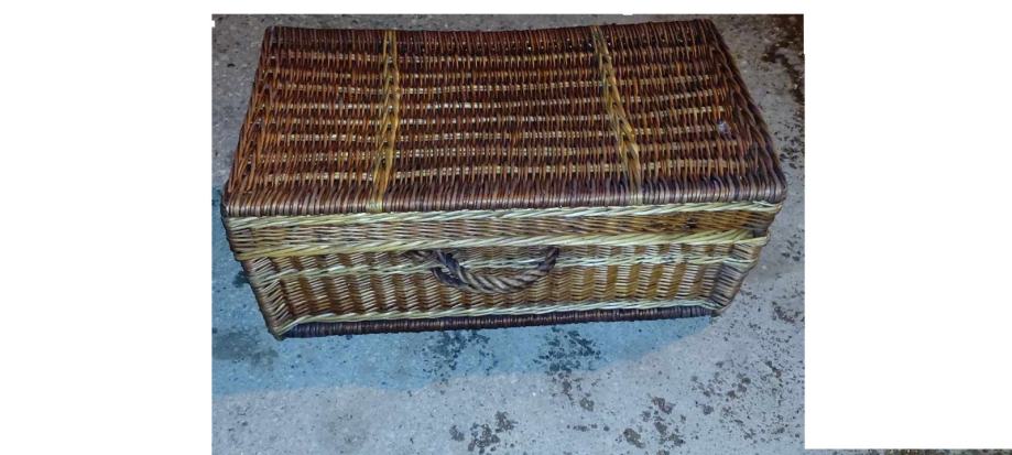 Pleteni starinski sanduk od šibe za postljinu, igračke itd.