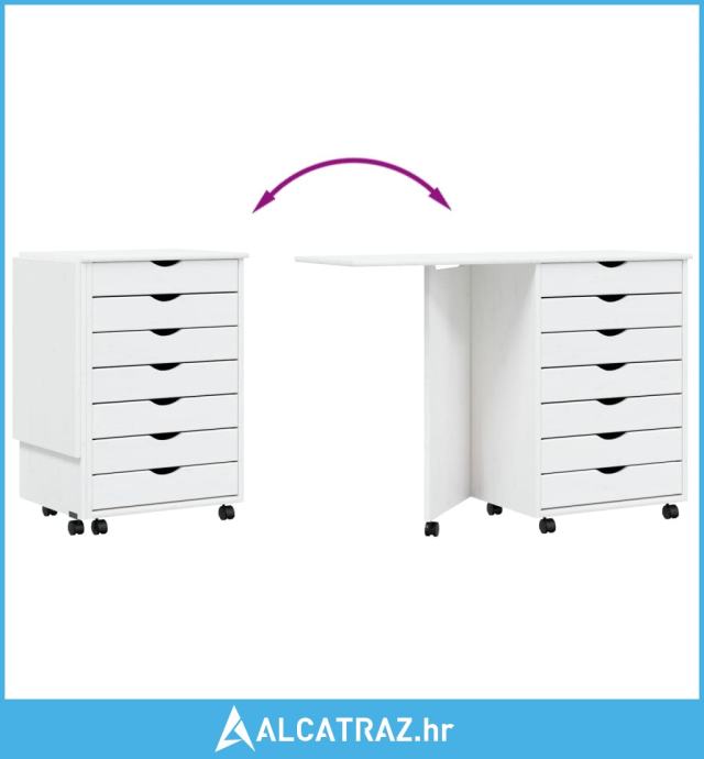 Pokretni ormarić s radnim stolom MOSS bijeli masivna borovina - NOVO