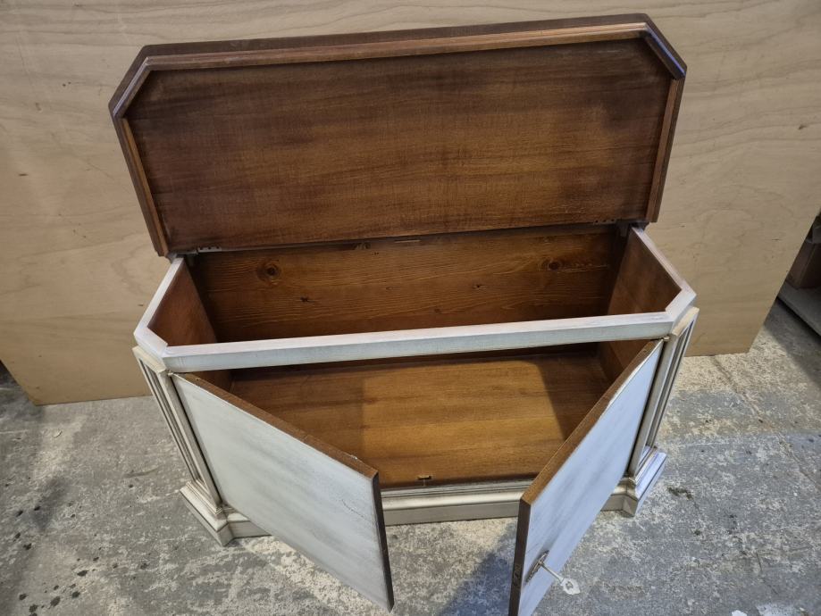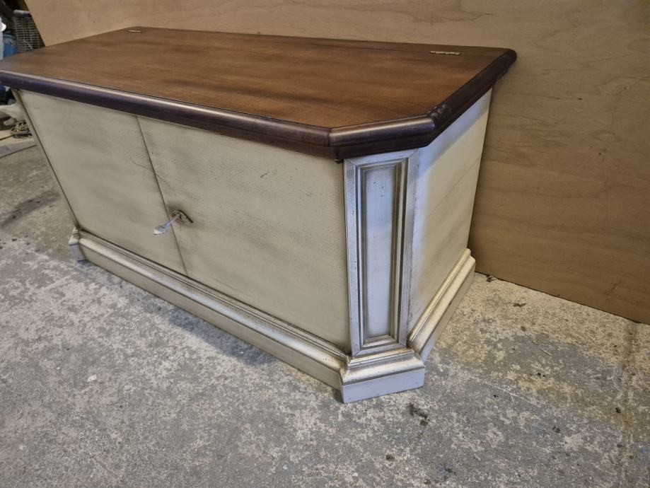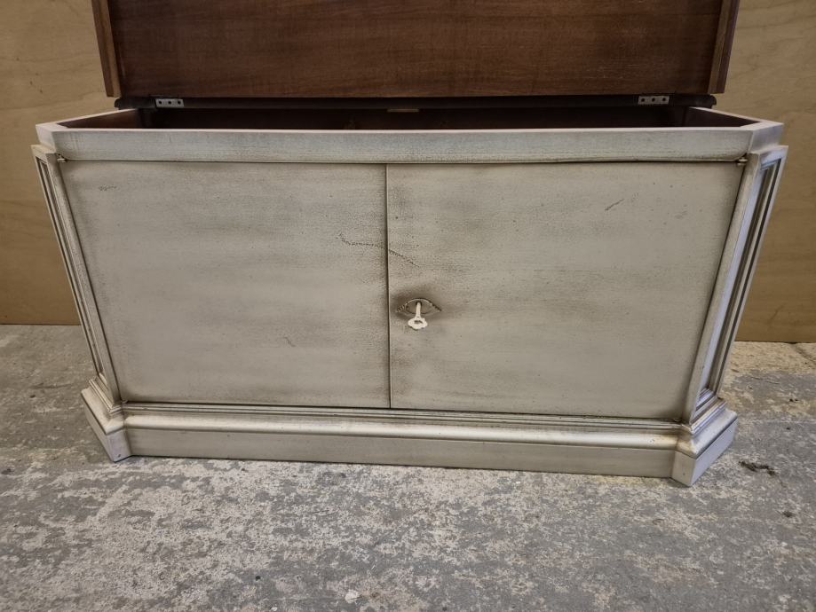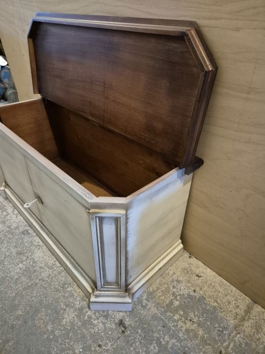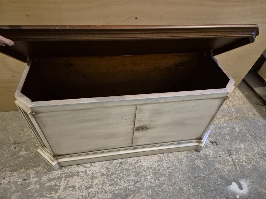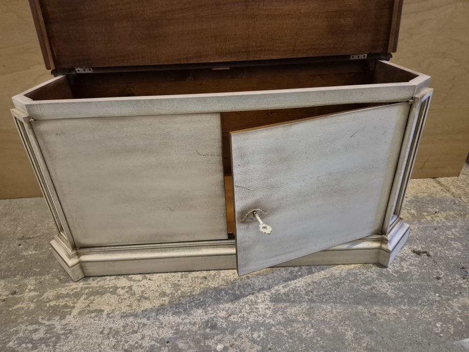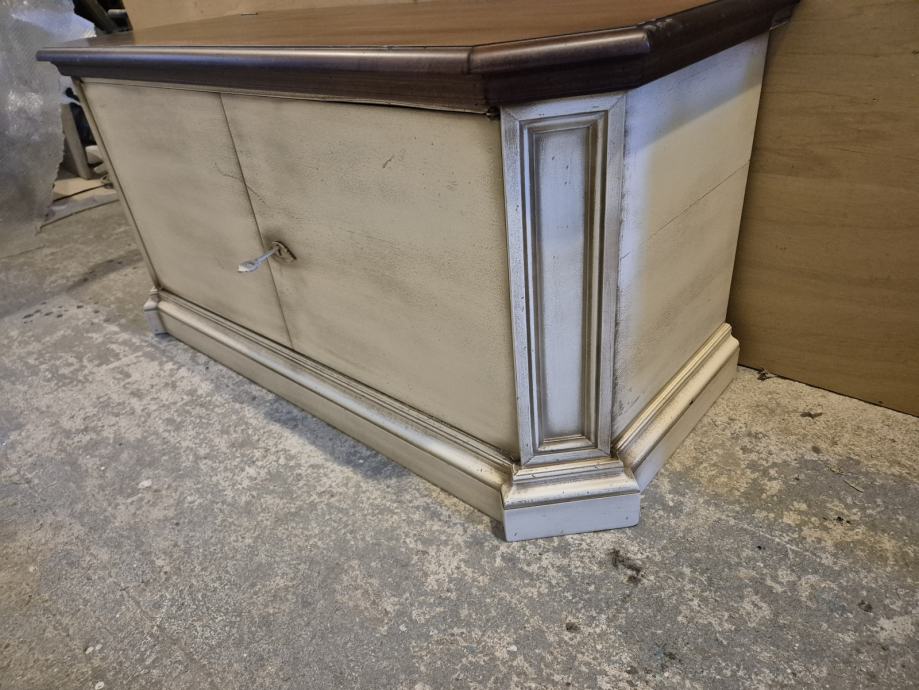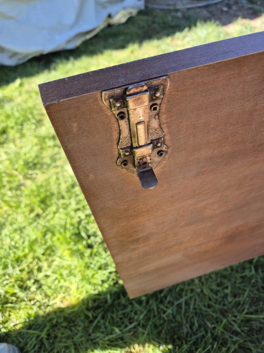 Lakirana u više boja..ploha detalji sa imitacijom starog drveta i pohabanosti..imam slike gdje se vidi da je namjerno tako rađeno tko je"nevjerni Toma"..ima I video tko treba...uglavnom sve sve tip top ..prekrasne kombinacije boja...imitacija crvica kao da je od jedne daske rađeno dvoje vrata ,,i di se prenosi imitacija crvotočine ...to je finta naravno.