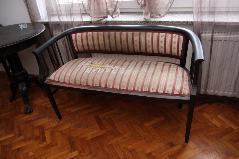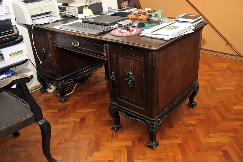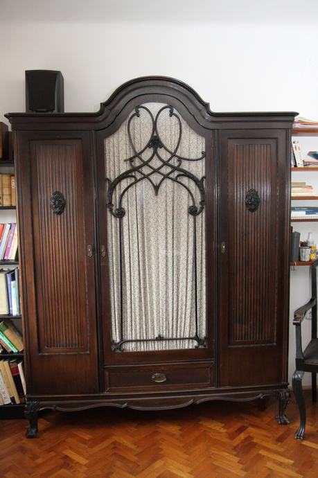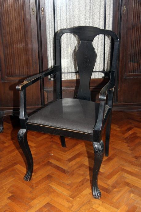 Prodajem u kompletu radnu sobu, 1920 god., tamno smeđe boje. Sastoji se od pisaćeg stola, ormara, radne stolice, okruglog stola s dvije stolice i dvosjedom. Moguća je zasebna prodaja radnog stola i stolice ili ormara ili okruglog stola s navedenim stolicama.